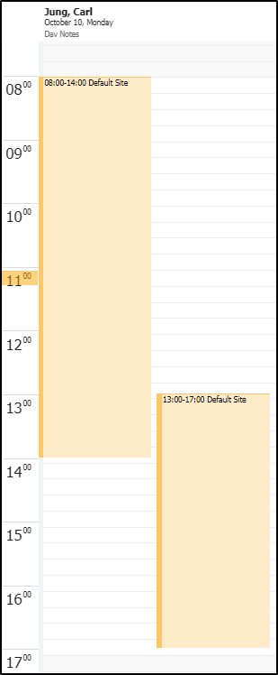 It is also possible to have blocks within "larger" sessions blocked by limits reached in "smaller" sessions where both overlap. If one "larger" session was configured from 08:00 - 17:00 and another "smaller" session from 11:00 - 13:00 for the same user, site and location, and the "smaller" session reached its booking limit, then the available slots would fall around this blocked session, meaning the respective appointment type appointment could be booked between 08:00 - 11:00 and between 13:00 - 17:00 but not between 11:00 - 13:00.