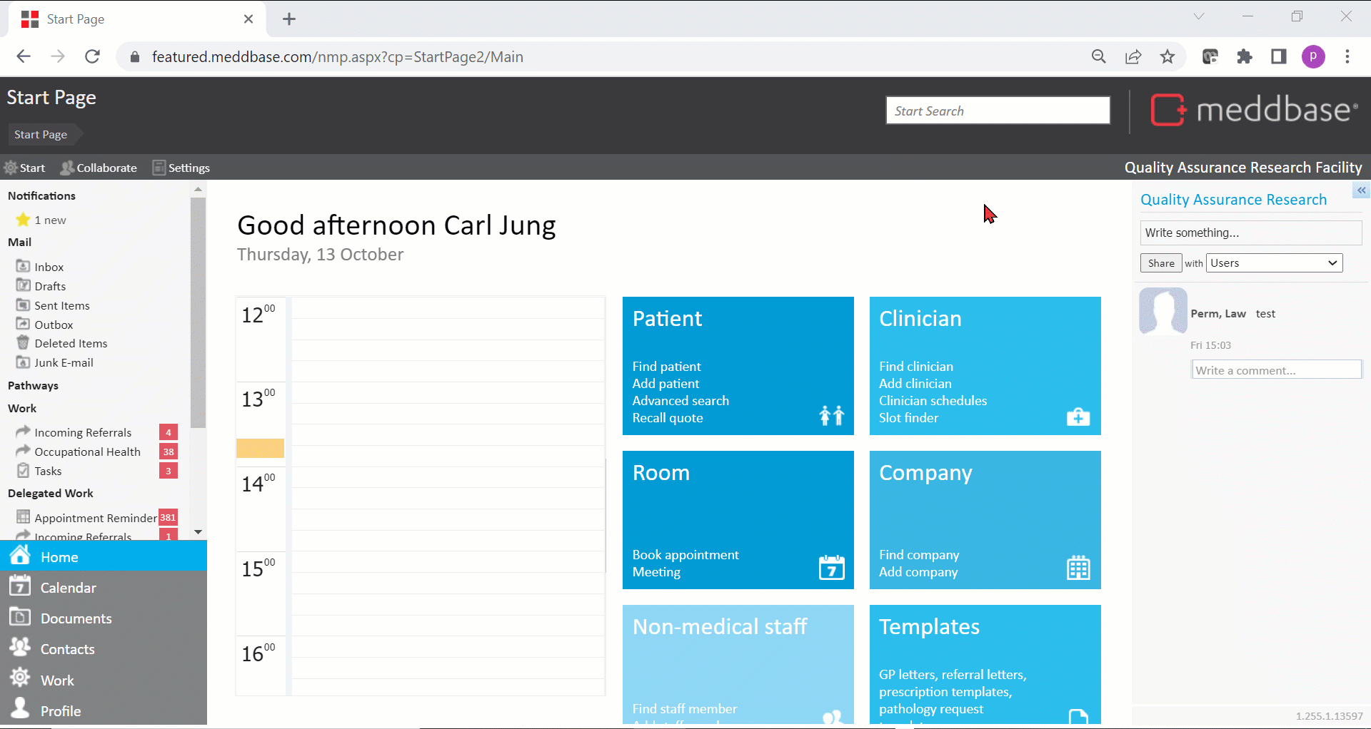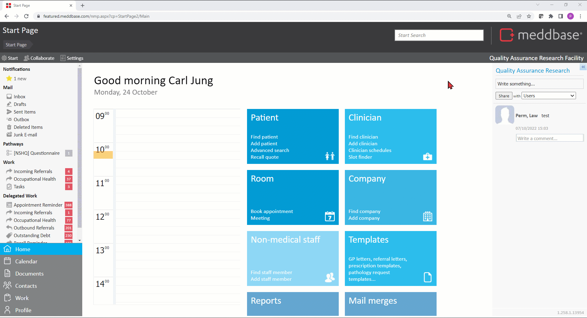 - A Meddbase user can use the Clinician Schedules feature, where they can select a slot on a visual representation of the clinic's workload