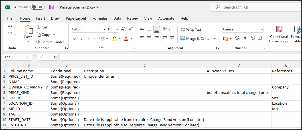 *The spreadsheets shown below show only the Required columns completed, as per the respective schema