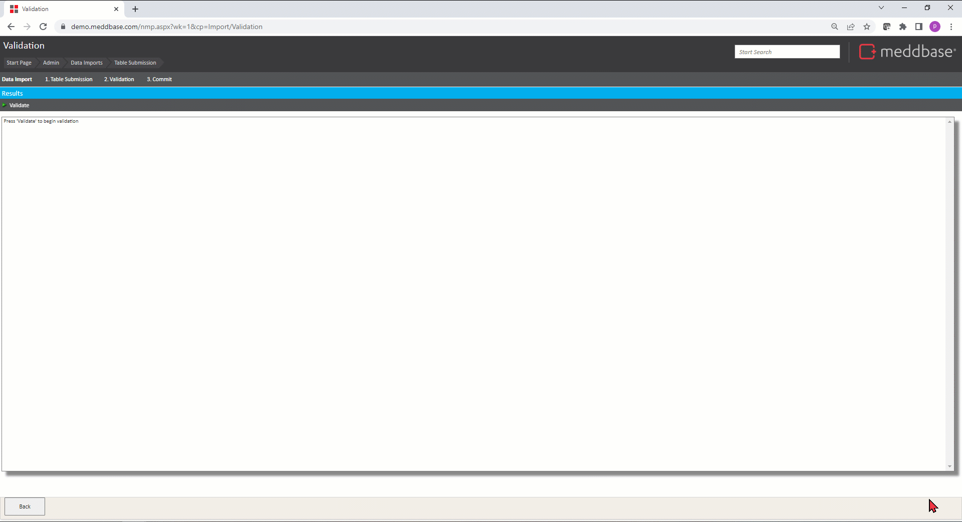 'Validate' stage of the import