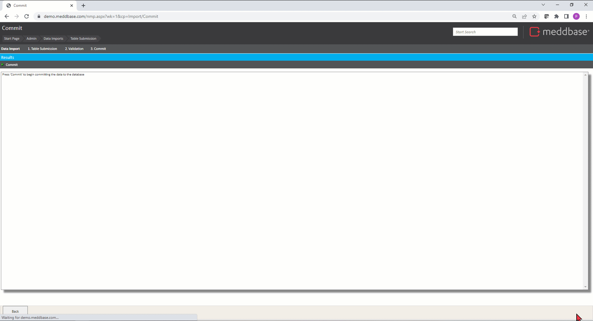 'Commit' stage of the import