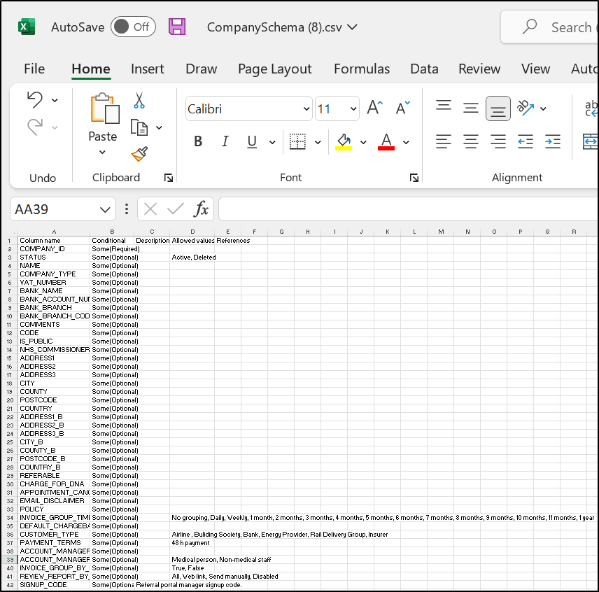 - OWNER_COMPANY_ID - this column references an existing entity: a Company, which means we must upload a spreadsheet for that entity in line with its respective Schema.