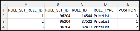 In this example we will also provide values in the POSITION column, which allows importing Billing Rules into a Rule Set in a particular order.