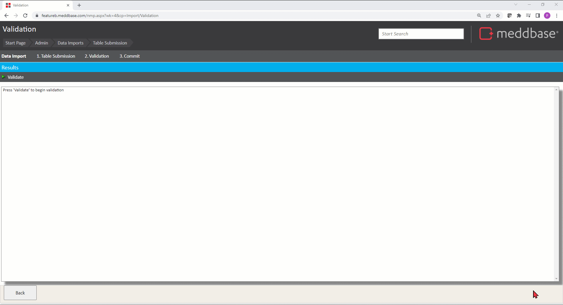 'Validate' stage of the import