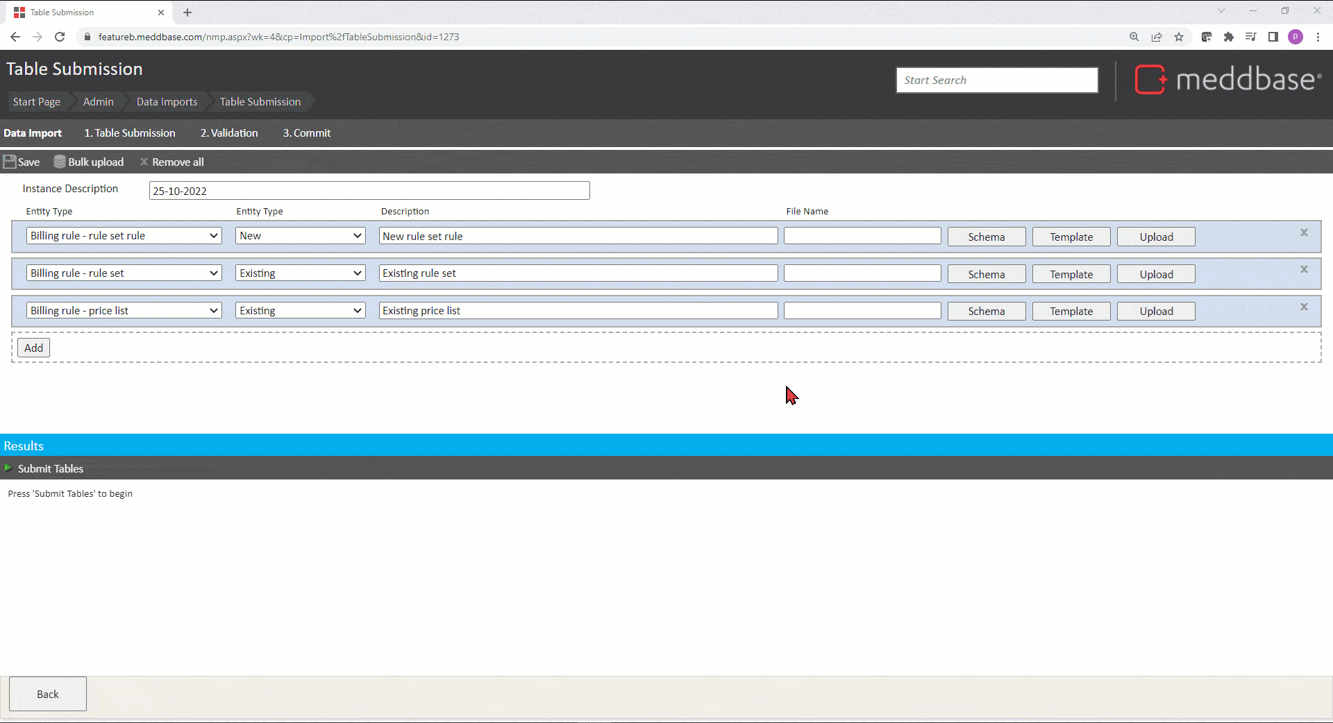 - Click Submit Tables and the system will check whether the spreadsheets you uploaded are in line with the schema(s).