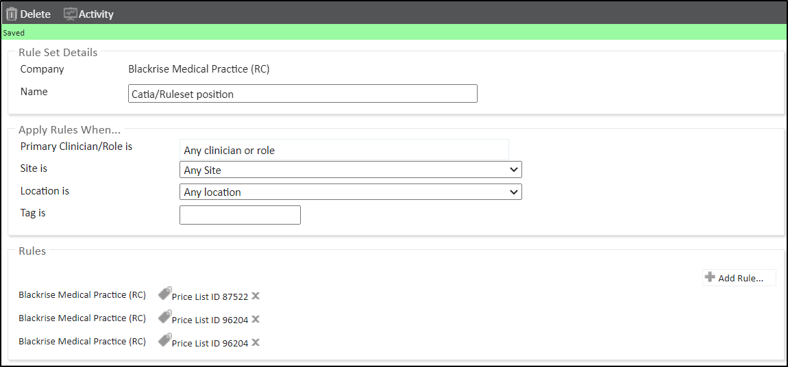 In the Rules section of the Rule Set you will find the 3 imported Price Lists in the specified order.