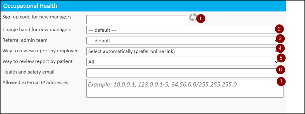 - Way to review report by employer (4)- allows selecting an automatic or manual way for this employer to review the OH report.
